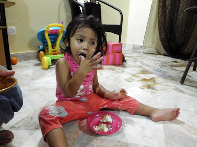Rania yang penat tiup lilin, Ayahnya & baby Zahra yang kepenatan =P